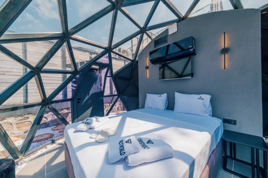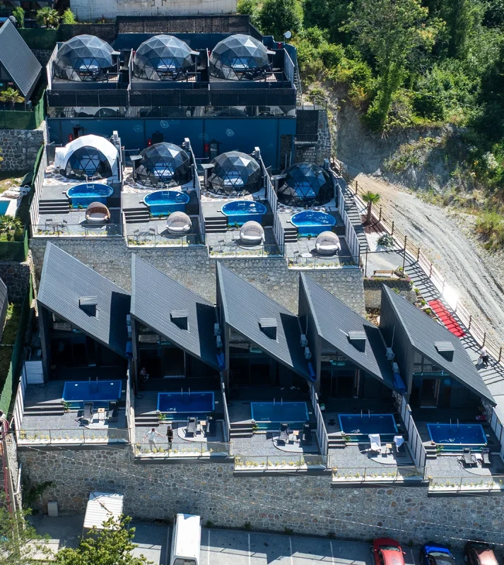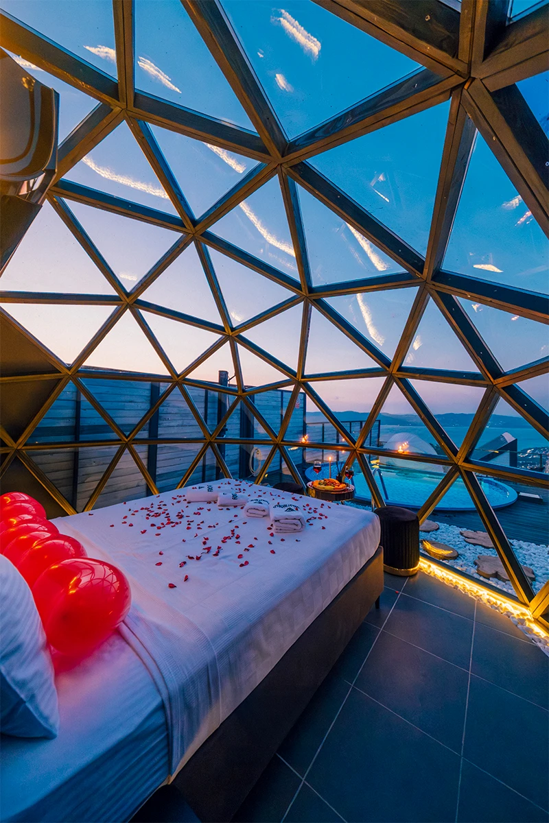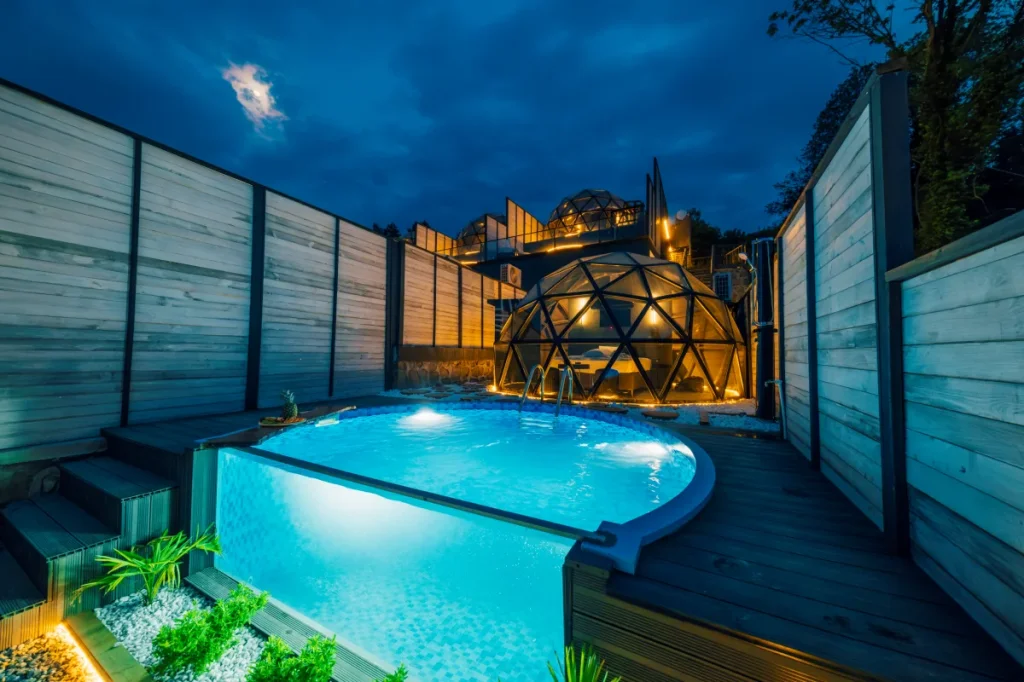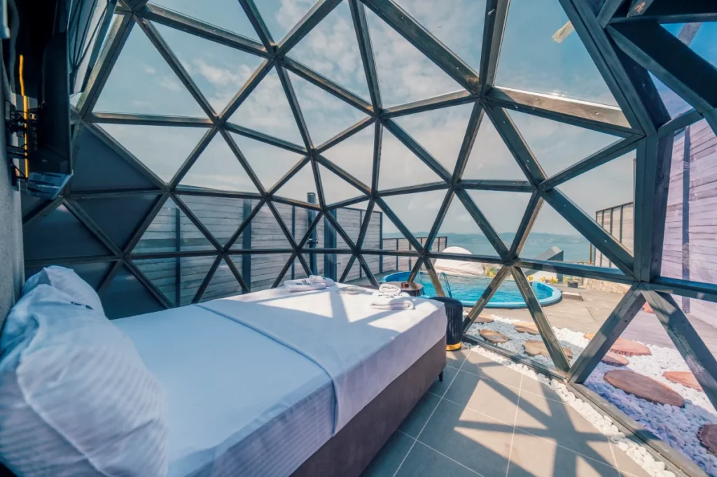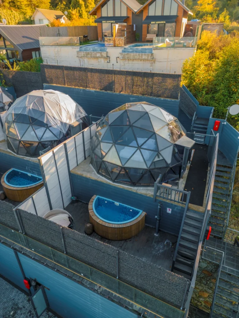 Sapanca’da bir ilk olan full cam dome evler, iki kişilik konforlu konaklama imkanı sunuyor. 360 derece göl manzaralı bu benzersiz tasarım, misafirlere doğayla iç içe, tüm konfor unsurlarıyla donatılmış özel bir deneyim yaşatıyor. Modern mimarisi ve şeffaf yapısıyla öne çıkan dome evlerde, gökyüzünü seyrederek uyanmak ve özel ısıtmalı cam havuzda mevsim fark etmeksizin doğanın tadını çıkarmak mümkün.