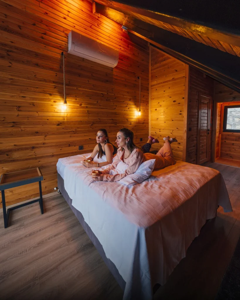 Forest World Sapanca’nın iki katlı lüks bungalovlarında, sabahları göl manzarasıyla uyanıp özel ısıtmalı havuzunuzda dört mevsim yüzmenin ve ailenizle veya arkadaşlarınızla doğa içinde konforlu bir kaçamağın keyfini çıkarabilirsiniz.