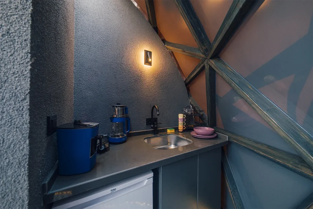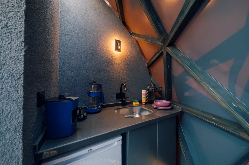 Geniş iç alanı ve 1 çift + 1 tek yatak düzeni ile aileler ya da arkadaş grupları için hazırlanan Relax Dome, konforlu bir konaklama imkanı sunuyor. Panoramik göl manzarasına karşı konumlanan özel sıcak havuzu sayesinde dört mevsim keyif yaşatıyor. Konaklamaya dahil kahvaltının yanı sıra, klima, yerden ısıtma, Wi-Fi, akıllı TV ve barbekü alanı gibi donanımlarla ev konforunu doğanın içinde birleştiriyor; Sapanca glamping deneyimini ayrıcalıklı kılmayı hedefliyor.