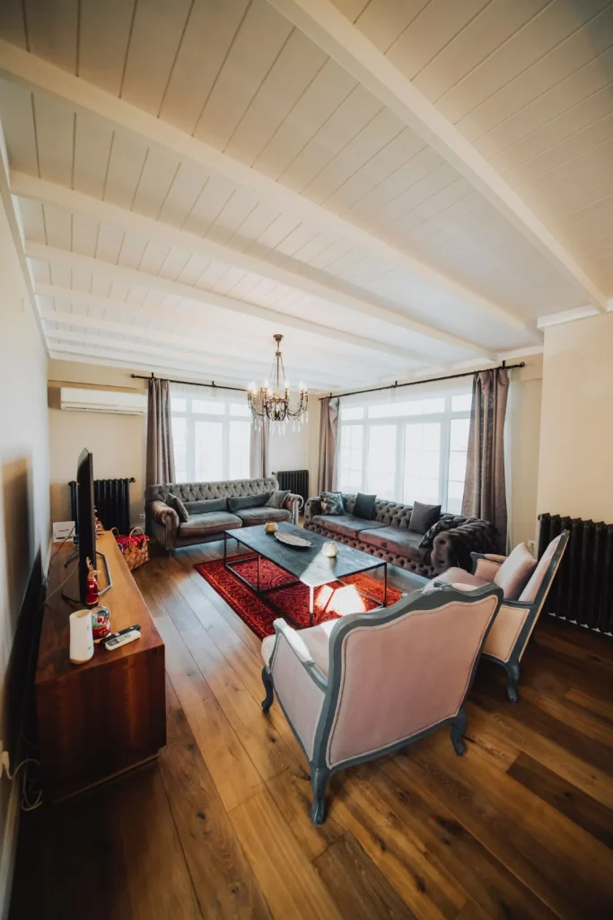 5+2 villa konseptiyle 10 kişiye kadar misafir ağırlayabileceğiniz geniş yaşam alanları, aile ve arkadaş grupları için ideal bir ortam sunar. Her odada şömine bulunan villalarımız, soğuk kış günlerinde bile sıcak bir atmosfer sağlar.