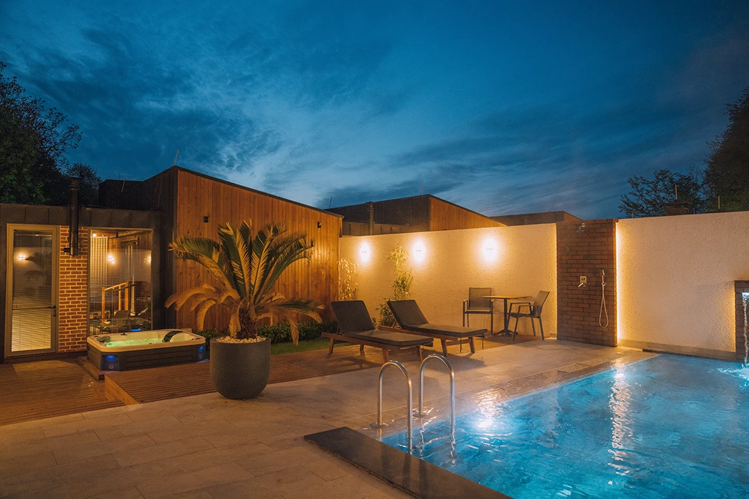 45m²’lik bu 2 kişilik oda, bungalov sıcaklığını otel lüksüyle birleştiriyor. Şömineli kapalı kış bahçesi ve Maşukiye orman manzarasına karşı ısıtmalı, şelaleli ve ışıklandırmalı özel havuzuyla dört mevsim romantik bir kaçamak sunar.